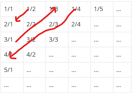 - n번째 줄에 대응되는 분자와 분모의 합 m은 n+1=m을 만족한다