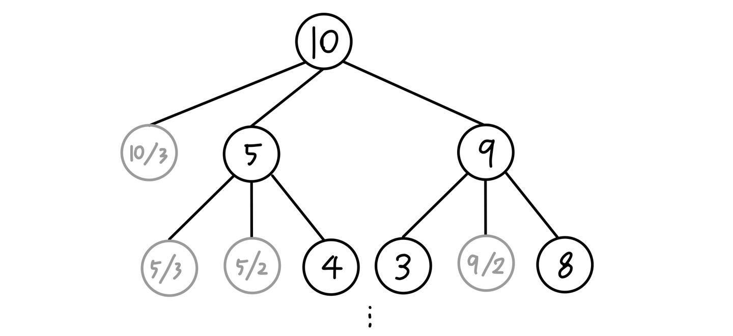 놀랍게도 그래프 탐색으로도 풀 수 있는 문제이다. 동적 계획법은 잠시 옆으로 밀어내고 순수히 이 방법에 대해 생각해보자. 사실 앞에서 생각해 보았던 1 ~ n까지의 모든 값을 배열에 저장하고 문제를 푸는 것은 비효율적일 수도 있다. 왜냐하면 굳이 구할 필요도 없었던 값들까지 포함해서 계산을 했기 때문이다.