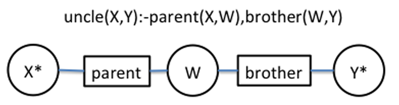$X, Y, W$은 logical 변수이고 말 그대로 domain만 일치하는($parent(X,W)$에서 $X$는 반드시 사람이다) 어떤 entity가 들어와도 상관하지 않는 일반적인 규칙을 학습할 수 있다. 이것을 rule mining이라고 한다.