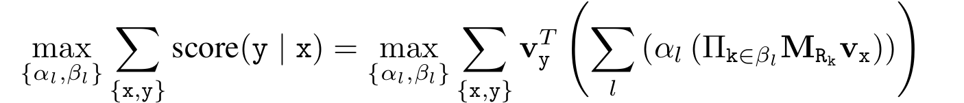 $\left\{ x,y\right\}$는 해당 $query$를 만족시키는 entity 쌍이고 $\left\{ \alpha_l,\beta_l\right\}$는 학습해나가야 할 것들이다.