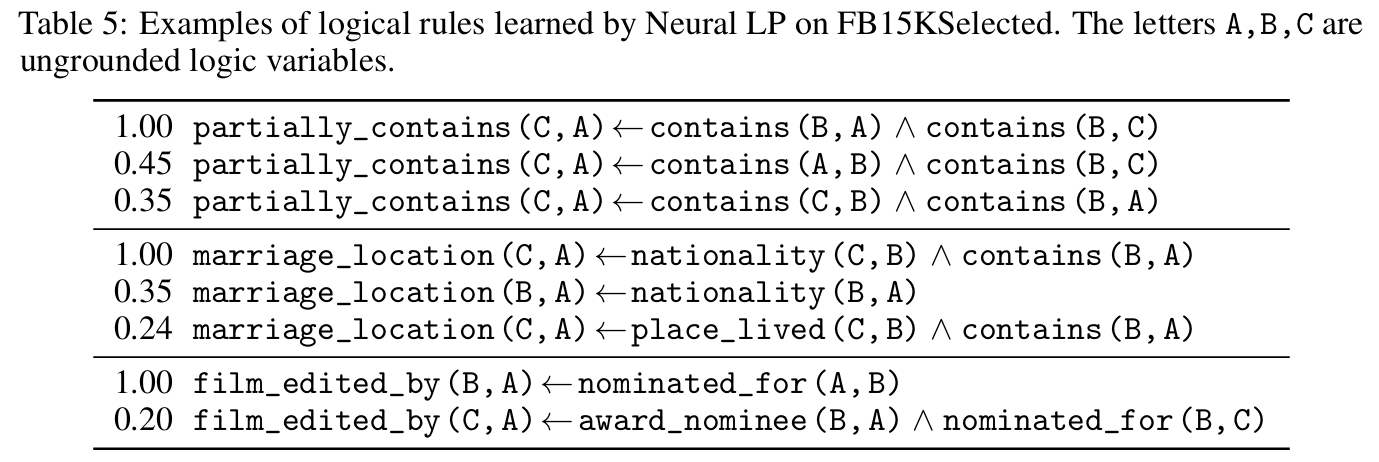 즉 Neural LP는 특정 rule로의 근사가 아닌 다양한 logical rule들의 확률적 분포를 학습한다.