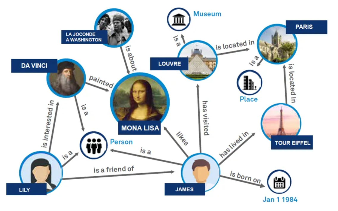 그래프는 노드와 간선으로 이루어져 있다. 노드를 객체, 간선을 객체 간의 연결로 이해할 수 있다. 여기서 더 나아가 지식 그래프(Knowledge Graph, KG)에 대해 살펴보자. 지식 그래프는 객체(entity) 사이의 관계를 간선(relation)으로 정의한 데이터 집합이다. 독특한 점은 간선은 양방향, 방향 간선뿐이며 간선에 종류가 있다는 점이다. 가령 parent_of, is_capital_of 등이 있다. 하나의 triplet (h, r, t) 형태가 데이터 단위가 되며 h -> r -> t 순서로 관계가 정의된다(e.g., (Paris, is_capital_of, France)).