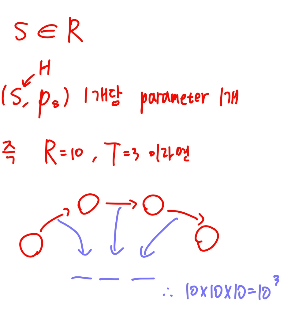하지만 이 방법으로 학습해야 하는 파라미터의 개수($O(|R|^T)$, 이유는 appendix에)가 지수적으로 증가한다. 이는 관측된 쌍 $(x,y)$의 개수를 넘어서 over parameterization의 문제가 발생할 수 있다. 파라미터의 개수를 줄이기 위해 수식 $w_H(\alpha)$을 수정하면