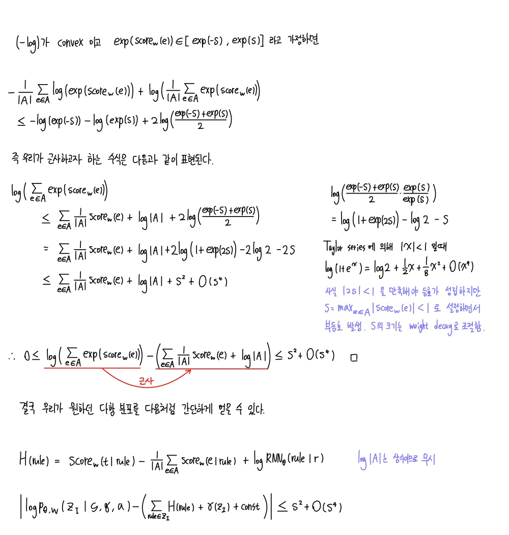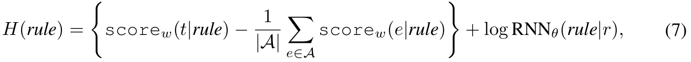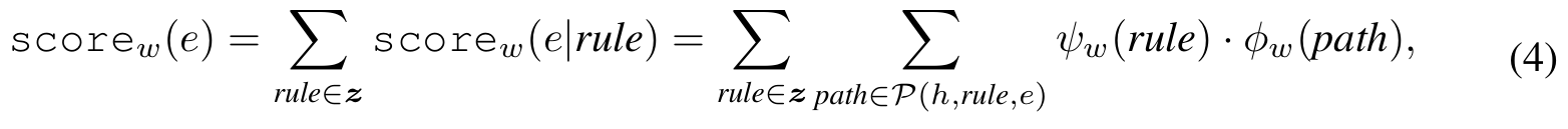 이는 즉 어떤 rule에 대해 $t$는 positive example, $e$는 negative example 취급한다. 특히 negative example에 대해서는 평균을 내는데 이 안에 $e=t$가 존재해도 다른 $e\neq t$ candidate answer들이 멱살 잡고 score 값을 끌어내려줄 것이므로 크게 신경쓰지 않아도 괜찮다.