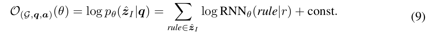 고품질의 rule들을 얻었기 때문에 이들로 RG를 update 해주면 된다. 즉 RG에 있는 $RNN_\theta$에게 $\hat{\textbf{z}_I}$에 해당하는 rule 생성을 강화하도록 피드백을 주면 되는 것이다.