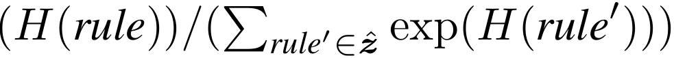 결국 log-posterior를 다항 분포 q(zI)로 나타낼 수 있다. 이에 대한 증명도 appendix에 남긴다. 우리가 최종적으로 뽑고 싶은 high-quality rule을 q(zI)에서 뽑는다고 해도 무방하며 이렇게 최종적으로 뽑힌 rule들을 ^zI이라고 하자. 즉 각 rule의 확률을 아래의 수식으로 구할 수 있는 것이다(rule에 영향을 받는 값이 H뿐이기 때문).