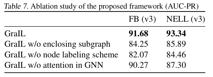 크게 두 setting에서 실험을 수행한다. 하나는 train subgraph, test subgraph에서 entity가 서로 disjoint(relation은 겹쳐야 함)하게 구성하는 inductive relation prediction과 다른 하나는 entity와 relation 모두 겹치게끔 구성하는 transductive relatin prediction이 있다. 마지막 setting은 KGE와의 동등한 비교를 위해서이다. GralL은 $3$-hop을 사용했다고 한다.