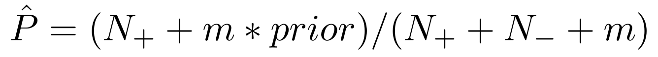 $N_+$는 rule을 만족하는 positive example의 개수이고 $N_-$는 rule을 만족하는 negative example의 개수이다. $m=5, prior=0.5$로 설정된다.