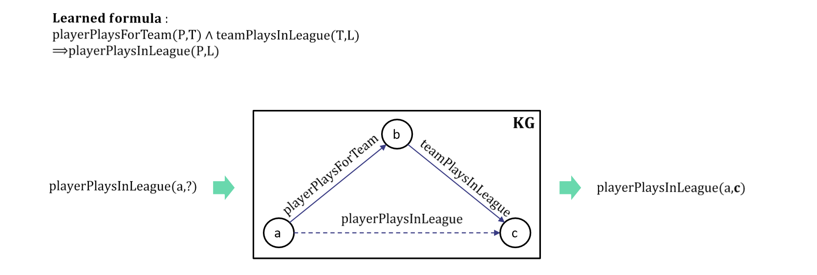 즉 위의 formula 뿐만 아니라 KG에서 신뢰도 높게 평가된 formula들을 다수 추출한 시스템은 두 entity 사이의 관계를 알아내는 능력을 갖게 된다. 따라서 이런 추론 머신은 복잡한 QA 시스템에서 필수적인 요소로 자리잡을 수 있는 것이다.